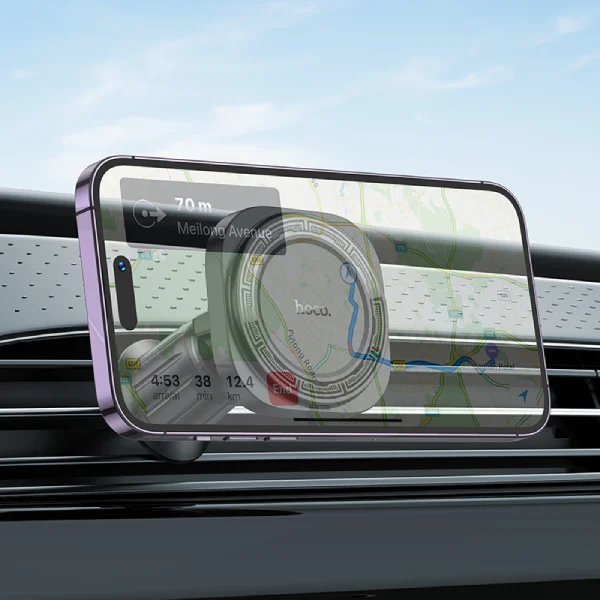 This magnetic phone holder easily attaches to your car’s air vent (air outlet), offering a tool-free setup that’s ready in seconds. The compact and stylish design blends seamlessly with your car interior, and at just 57 g, it won’t obstruct your dashboard view or airflow.